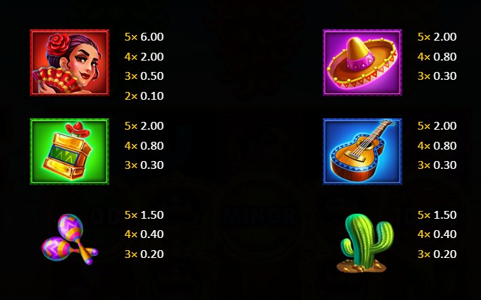The standout symbol is a traditionally dressed Mexican woman, which pays from just two matching symbols, setting it apart from the rest.